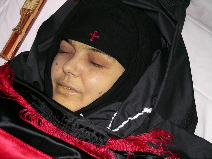 Усопшую принесли в храм. Сделали снимок на память. Над телом по традиции читали Псалтирь. Когда сфотографировали через 40 минут – поразились. На устах у нее появилась улыбка. Старец сказал: «У нее было много любви к людям. Тяжелая болезнь. Она очень высоко в раю».